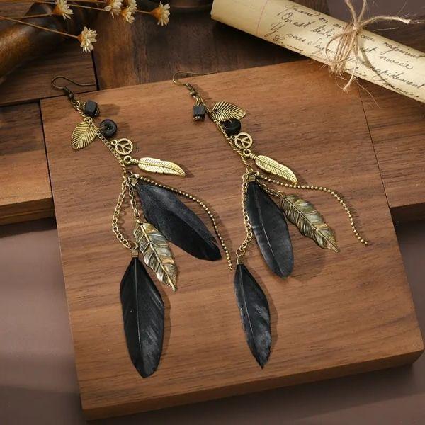 Boho Vihor – Minđuše sa perjem i bronzanim detaljima