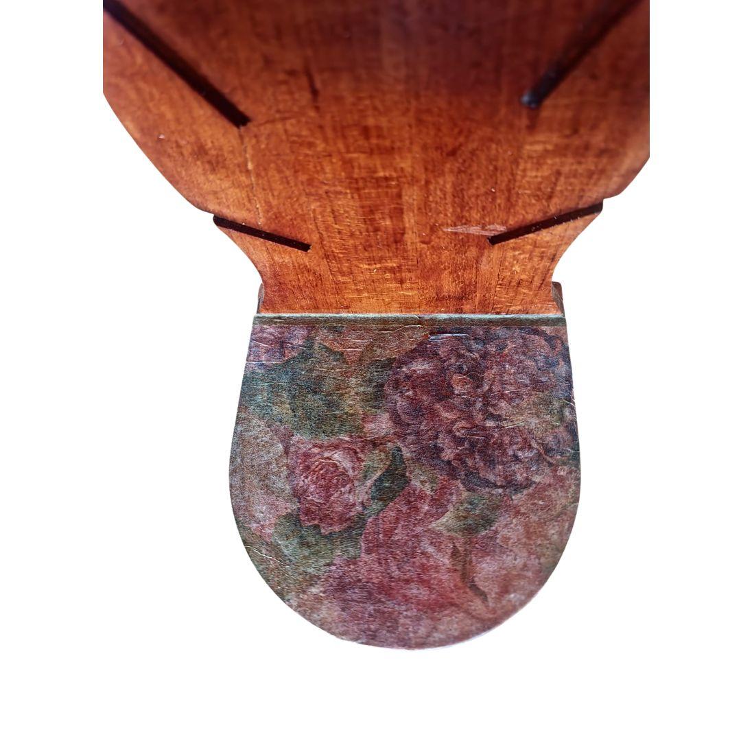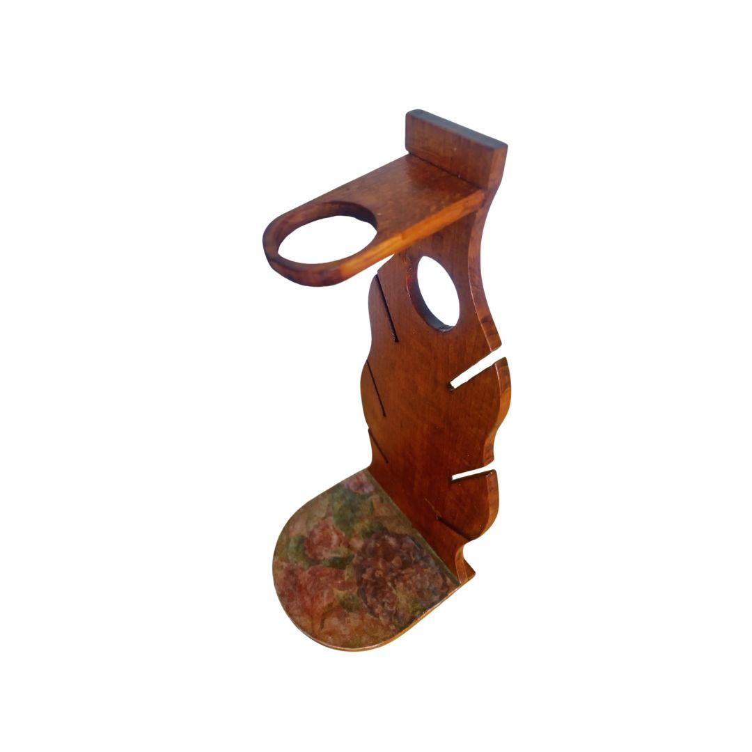 Etnoria Vintage dekupaž stalak za flašu “Zlatni List” nosi priču o zanatstvu i tradiciji. Izrađen od drveta i ručno lakiran, ovaj elegantni komad potiče iz perioda kasnih 80-ih i ranih 90-ih godina — vremena kada su drvene forme bile simbol topline doma i trajnosti.
