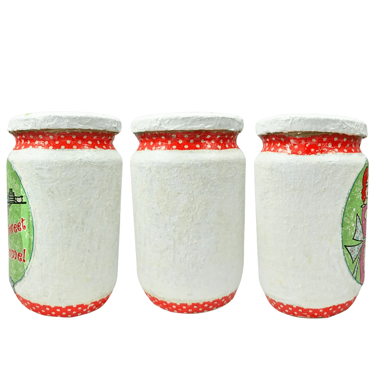 Ove unikatne staklene tegle, ručno dekorisane dekupaž tehnikom, donose nostalgičan duh prošlih vremena u vaš dom.